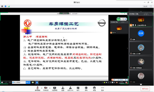 本次实习与湖北十堰东炳公司合作。为了实习的顺利进行并保证实习效果,2020年6月中旬,公司组织所有带队老师召开了生产实习工作会议,会上确定各专业学习内容、时间和组织方式。会后各组带队老师制定了详细的实习计划并组织召开了实习工作动员会议。实习期间,通过腾讯会议以讲座的形式进行了2场专题讲座、通过学习通平台对东风商用车从零件加工到总装进行了培训、通过学呗平台对工业机器人示教编程、汽车制造与装配、智能制造单元认知及压力铸造机认知进行了虚拟仿真。
