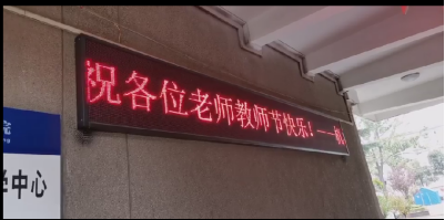 9月10日上午,公司响应校《关于做好庆祝第36个教师节有关工作的通知》文件号召,开展了为教师“亮灯”的活动,分别在石鼓校区综合楼大厅和主楼一楼东侧的LED显示屏上上打出:“祝各位老师教师节快乐!”字幕,向各位在疫情期间辛勤工作的教师表达了节日的问候和祝福。