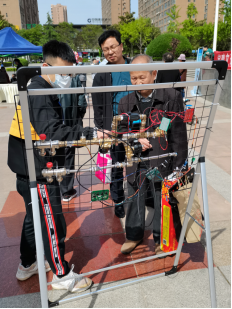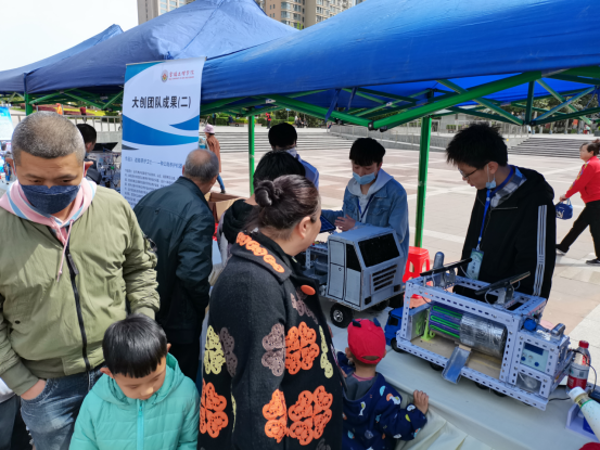 在宝鸡市高新广场,师生们向广大市民展示了“智能二次供水水质监测和自动清洗装置”、“新型智能语音分类垃圾桶”、“智能供暖除杂装置”等与生活密切相关的科技成果,使市民近距离体验了科技成果的智能、方便与快捷,切身感受了科技的魅力。通过本次科普宣传活动、传播了科学知识,宣传了科学思想,弘扬了科学精神,提高了市民科学意识,受到广大师生和市民朋友的欢迎与好评,现场反响热烈。