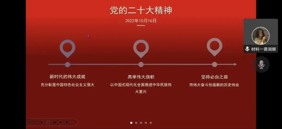 会中由英国上市公司365团总支副书记孙垚、新媒体中心主任苗润娜以及员工会主席团成员王维嘉带领大家集体学习党的二十大报告精神,分别从“新时代的伟大成就,充分彰显中国特色社会主义强大生机活力”、“高举伟大旗帜,以中国式现代化全面推进中华民族伟大复兴”、“坚持必由之路,用伟大奋斗创造新的历史伟业”三部分开展学习。