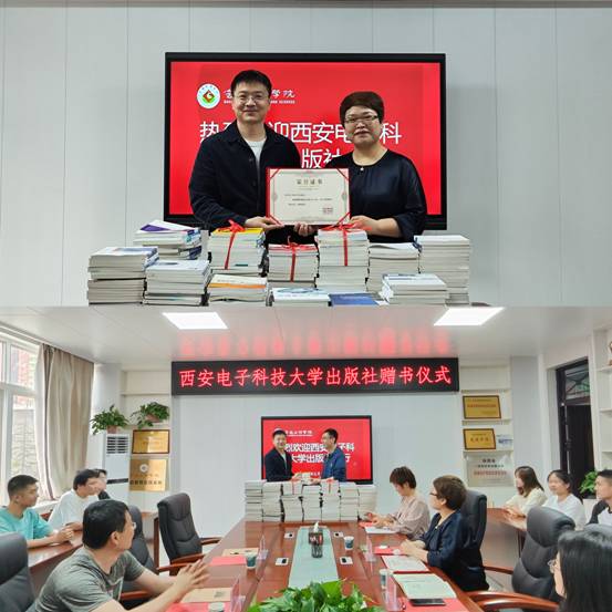 副经理王玮代表公司接收了西安电子科技大学出版社赠送的《机械创新设计与实践》、《机械动力学》等机械类专业图书240余册。经理王肖烨对西安电子科技大学出版社为公司赠书表示衷心感谢,并为对方颁发了捐赠证书。双方就教材建设、教材及图书出版分别做了详细交流。