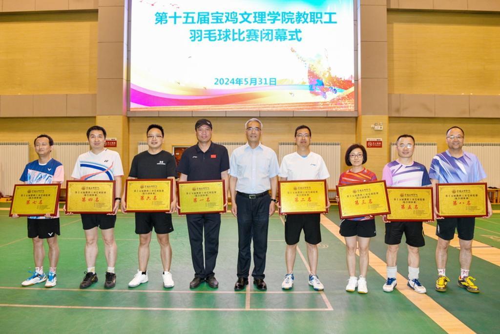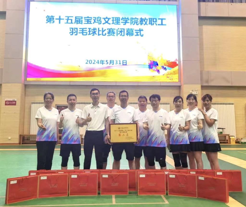 本次比赛由校工会主办,体育公司承办,教职工羽毛球协会协办,共设团体赛、单项赛、趣味羽球等3个项目,全校共有16支代表队200余名教职工参赛。公司选派13名教职工组队参赛,经过激烈角逐,最终取得了团体第二名的好成绩。在单项赛中,公司付士军和高红卫老师获得男子双打单项赛亚军。