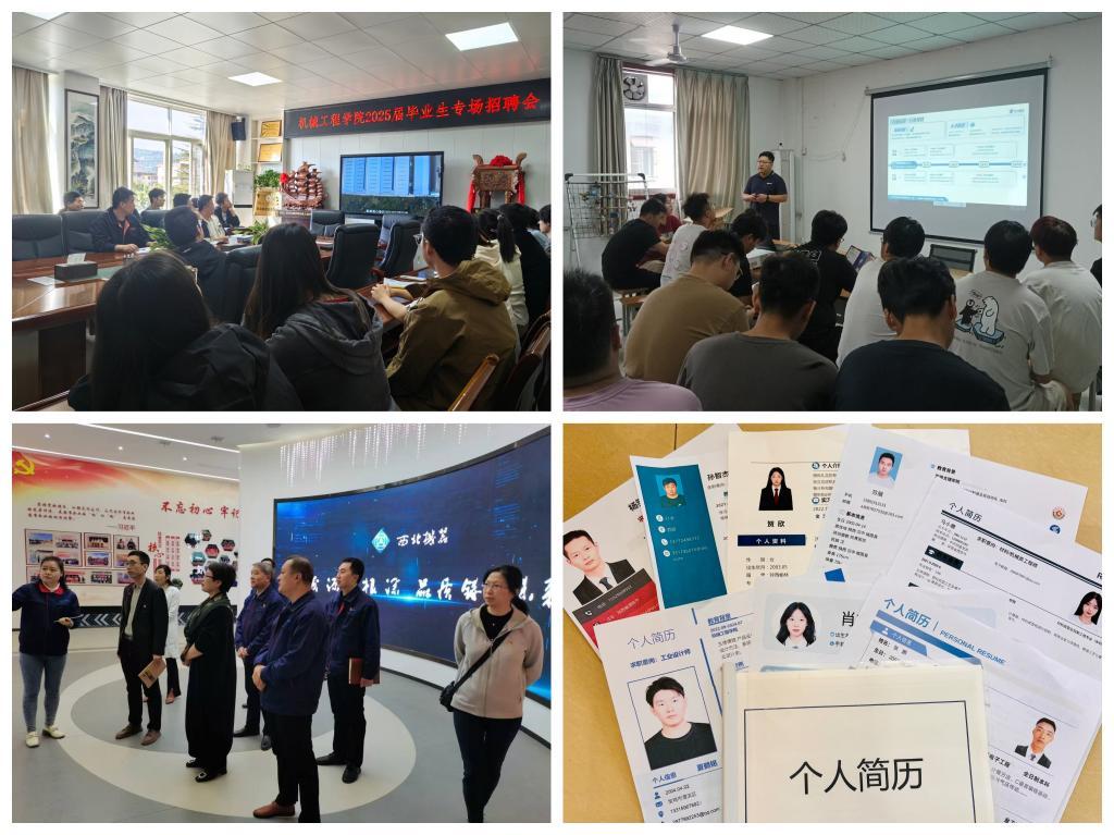 聚合资源、拓宽渠道。9月以来,公司根据专业设置,精准邀请对口企业来院举办“小而精、专而优”特色招聘会,先后邀请河北恒工精密装备有限公司、华天科技股份有限公司、陕西东铭汽车股份有限公司、青岛润蚨祥密封技术有限公司、人本股份有限公司、陕西金鼎铸造有限公司、宝鸡斯斯嘉机床零部件有限公司、鹏鼎控股有限公司、宝鸡西北有色地质机械研究院有限公司等10余家企业来校开展政策宣讲和专场招聘活动。公司领导班子成员走出校门开拓就业市场,先后前往西北机器有限公司、宝鸡吉利汽车部件有限公司、宝鸡斯斯嘉机床零部件有限公司、宝鸡瑞熙钛业有限公司、陕西柯尔斯复合材料科技有限公司、宝钛集团动力公司等企业开展访企拓岗活动。