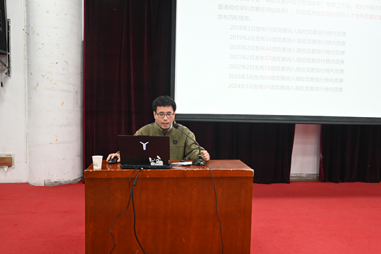 史鹏涛教授结合多年指导学科竞赛的丰富经验,从学科竞赛的重要性、竞赛种类、参赛注意事项及参与方法等方面,进行了深入浅出的讲解。他指出学科竞赛不仅能够提升员工的综合素质和专业知识,还为优秀员工的考研及职业发展提供了广阔的空间,通过参赛,员工能够强化逻辑思维,提升团队协作能力,并在实践中解决实际问题,从而显著增强就业竞争力,同时鼓励同学们积极参与竞赛,抓住实践机会,为未来的发展积累宝贵经验。