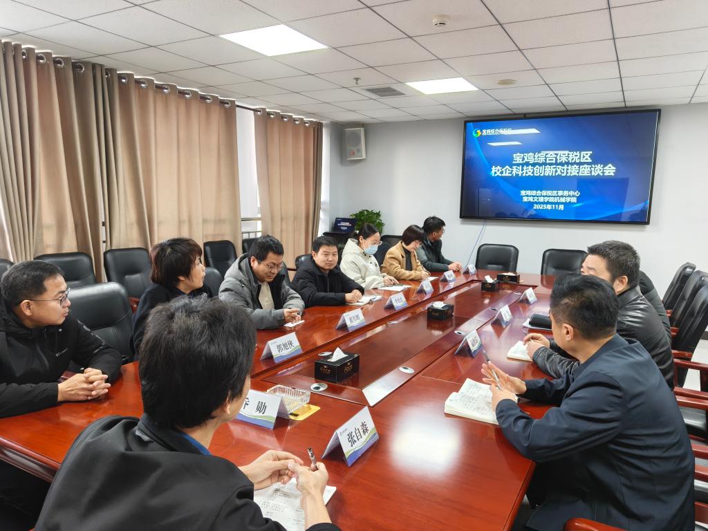 在座谈交流中,宝鸡综合保税区事务中心副主任唐宏系统介绍了保税区的功能定位、发展规划与产业布局,重点阐释了以“钛合金新材料、高端装备制造、跨境贸易”为支柱的特色产业体系建设进展。他指出,保税区正致力于构建集研发、生产、贸易于一体的高端产业生态圈,迫切需要高校在技术攻关与专业人才方面提供智力支撑。运营部部长郝永林结合园区运营实际,详细介绍了入驻企业的产业类型、项目推进进展以及未来合作的具体需求。