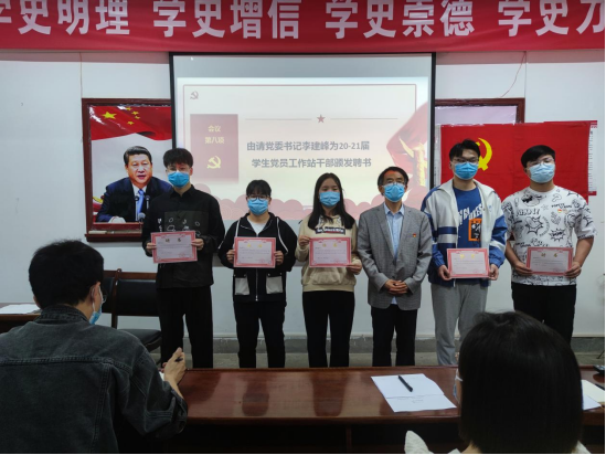 首先,2020-2021届站长王文滨同志进行工作站工作总结,对党员工作站取得的工作实绩,仍然存在的问题予以汇报,同时分享了自己在工作站的感悟和收获。接下来,王琳宣布了本届党员工作站的任命文件,由屈子睿公布2022年党员工作站工作规划,新任站长辛继先和各部长分别做工作设想和表态发言。