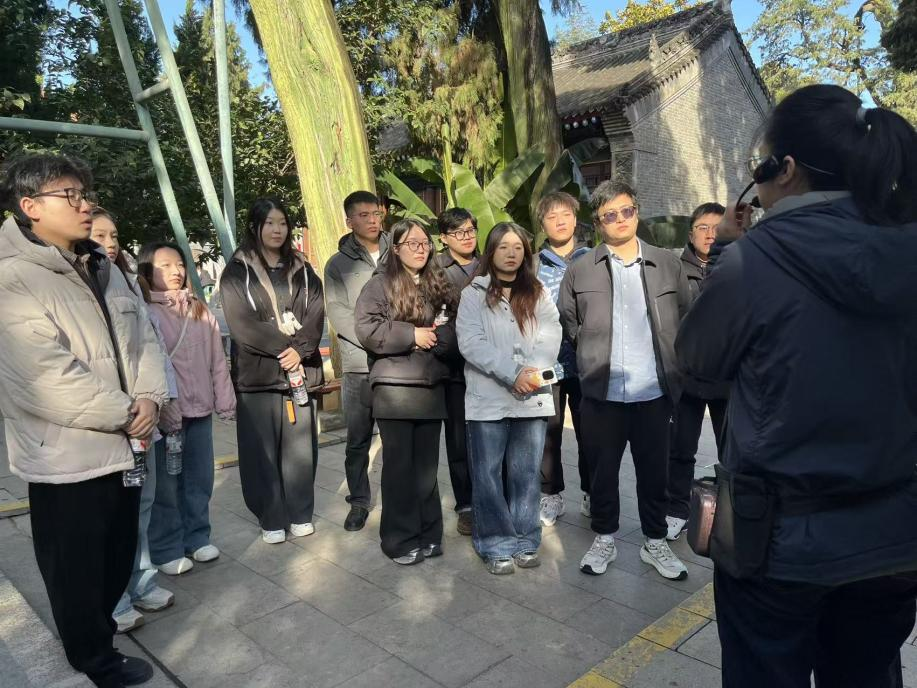首站,师生们来到北宋关学宗师纪念地——张载祠。同学们仔细聆听讲解,深入了解了张载先生的生平事迹和哲学思想。当听到“为天地立心,为生民立命,为往圣继绝学,为万世开太平”时,同学们深受震撼,纷纷驻足沉思。辅导员王海洋为同学们讲解了张载思想中“经世致用”“躬行实践”精神与机械工程专业追求的严谨求实、精益求精的工匠精神之间的内在联系,启发同学们思考传统智慧与现代工程教育的融合。