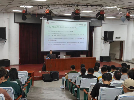 赵经理以老员工健康教育的重要性为切入点,深入浅出为同学们介绍了老员工中常见的肺结核、艾滋病、出血热等流行性传染病及其预防措施,通过介绍传染疾病的发病原理和不同疾病的传播途径,提出了相对应且有效的预防措施。同时对出血热、艾滋病从控制传染源、切断传播途径、保护易感人群等方面做出了重点介绍。她希望同学们能够提高认识,增强对传染病知识的了解;积极预防,沉着应对,通过养成良好生活习惯来增强自身抵抗力。