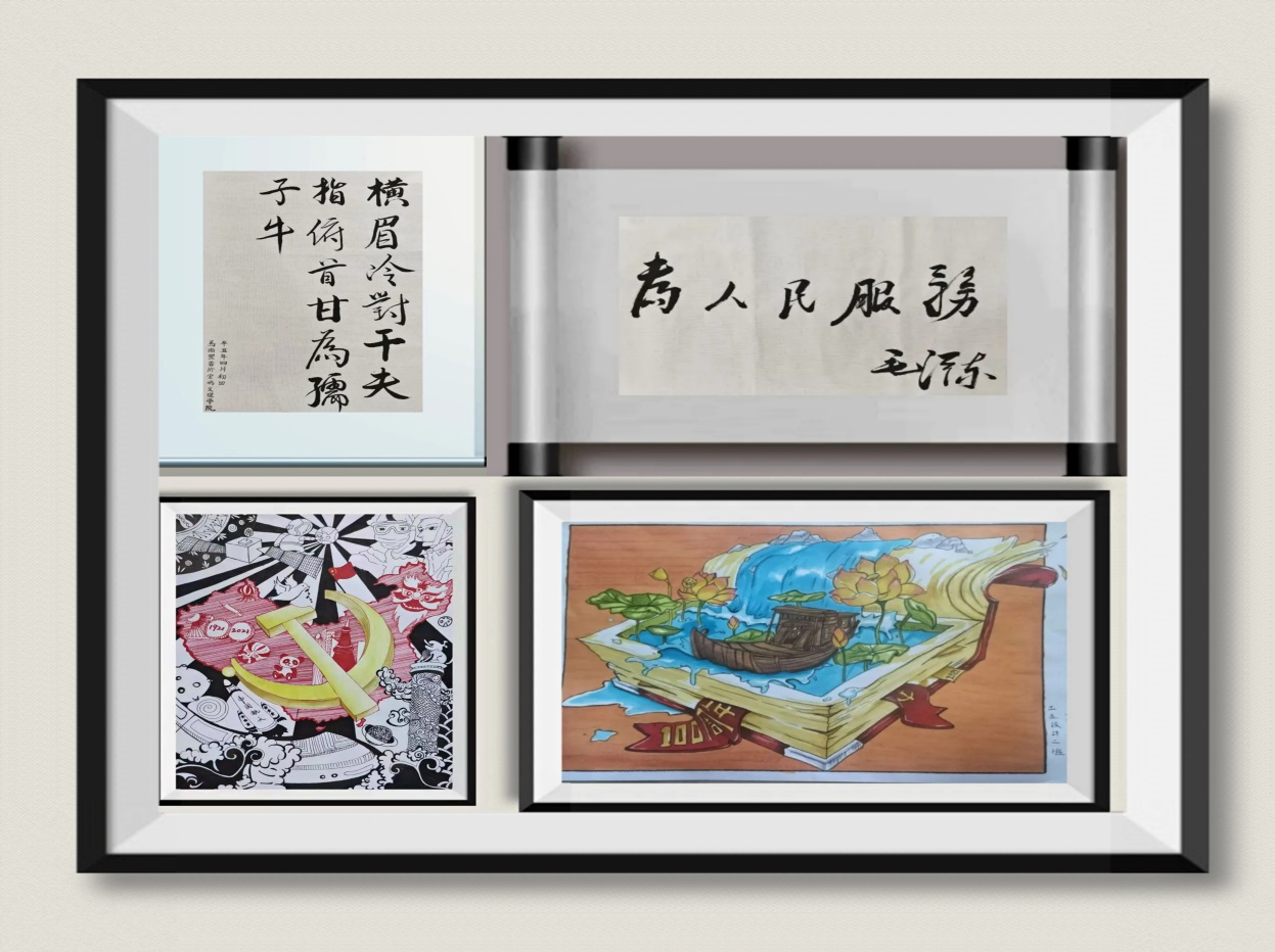 大赛从5月份开始,公司百余名师生积极响应,踊跃参加,用书法和绘画的形式描绘了新民主主义革命时期、社会主义革命和建设时期、改革开放和社会主义现代化建设新时期以及中国特色社会主义新时代不同时期党的光辉历程。大赛经初审,共收集书、画作品100余幅,作品通过剪纸、彩绘、素描、软笔、硬笔等形式或描画红船精神、抗战小故事、长征故事、抗疫精神等,或书写毛泽东诗词、习近平经典语录,表达了师生对伟大祖国、伟大人民的热爱和坚定跟党走的信念。