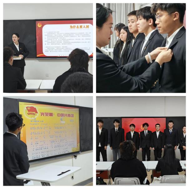 入团仪式在庄严的国歌声中拉开序幕。随后,团总支副书记贺欣宣读了2023年新发展团员名单,屈子睿为9名新团员佩戴团徽。新团员面向团旗庄严宣誓,用坚定的声音许下为共产主义事业而奋斗的誓言。老团员代表耿琬清对新团员分享了自己的经历,帮助新团员加深对团员的身份的了解。新团员代表代尧表示,将继承发扬共青团的优良传统,力争成为优秀的共青团员。