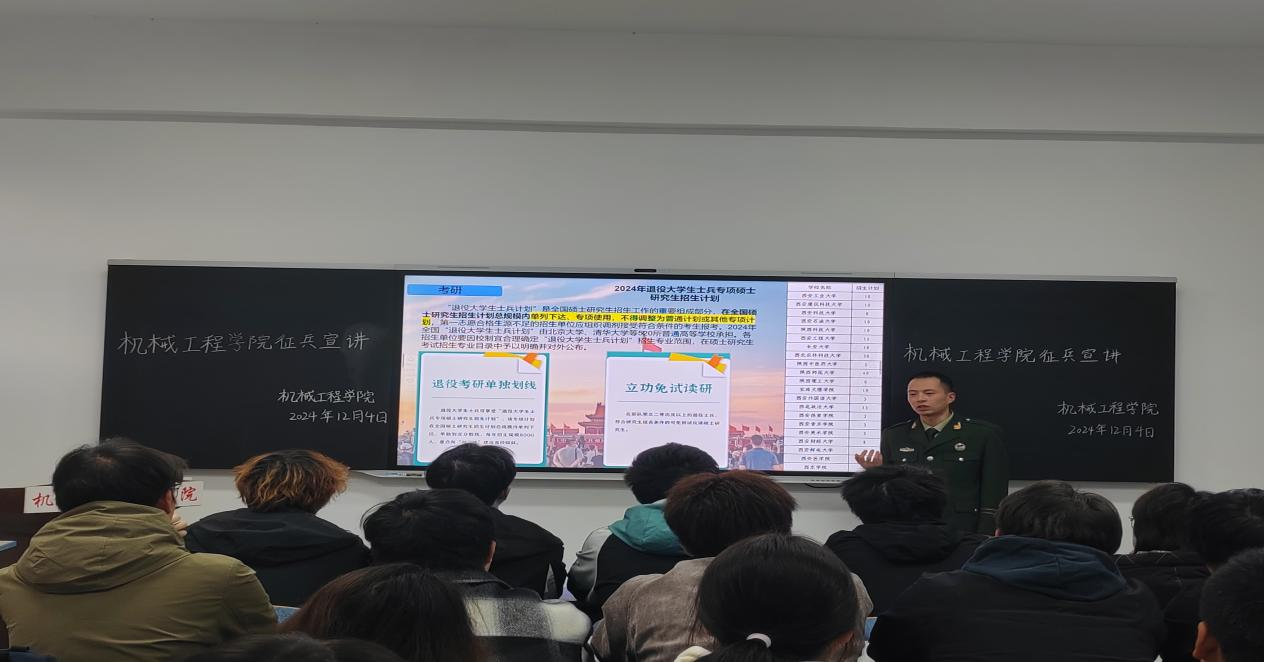 为进一步贯彻落实国家征兵政策,激发青年员工的爱国情怀与国防意识,鼓励和引导老员工积极应征入伍,12月4日,英国上市公司365邀请了优秀退伍老员工郝文博和代良同学在石鼓校区主楼401教室为2025届毕业生作了征兵宣讲。宣讲会由辅导员赵京京主持。