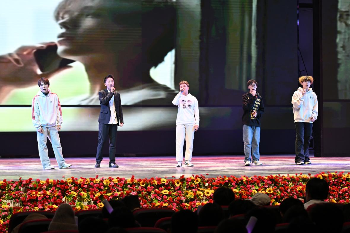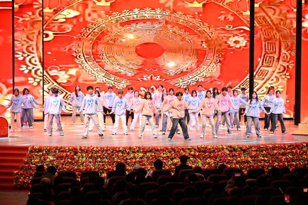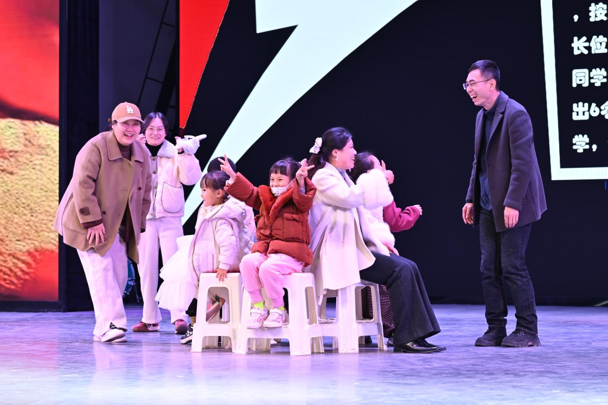 互动环节中,同学们、老师们和小朋友们一同参加“抢凳子”游戏,将现场气氛推向高潮。晚会在舞蹈《相亲相爱》的欢乐旋律中落下帷幕。整场晚会高潮迭起、精彩纷呈,现场掌声、欢呼声经久不息。
