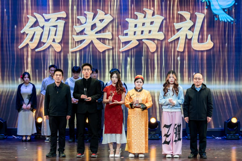 此外,二重唱《我的深情为你守候》旋律悠扬,两位演唱者配合默契,用温柔的歌声传递对友情的珍视与对未来的美好祝福;弹唱《一程山路》以轻柔的旋律与真挚的歌声,为新生送上最暖心的期许;葫芦丝伴唱《青花瓷》更是将民族乐器的典雅与流行音乐的灵动相结合,婉转的曲调勾勒出古色古香的东方意境,让在场观众沉浸其中。